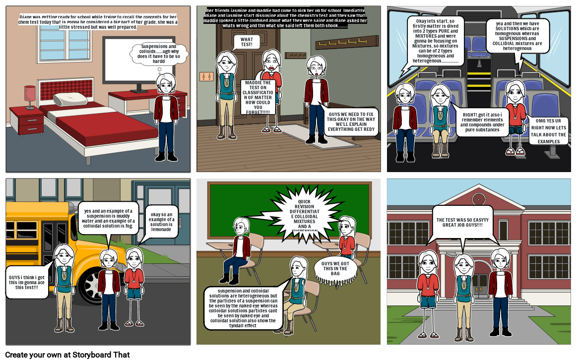 her friends jasmine and maddie had come to pick her up for school. Imediatlly diane and jasmine start dissusing about the chemistry test and they saw that maddie looked a little confused about what they were saing and diane asked her whats wrong and thn what she said left them both shook..........