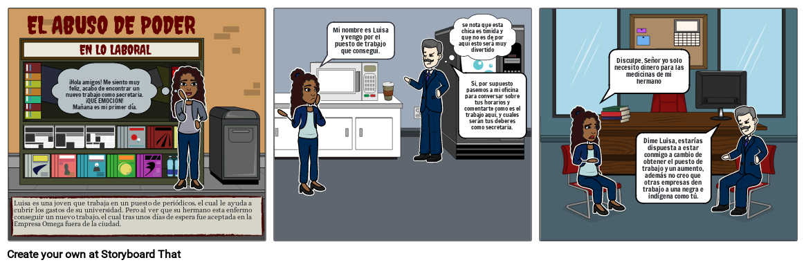 Dime Luisa, estarías dispuesta a estar conmigo a cambio de obtener el puesto de trabajo y un aumento, además no creo que otras empresas den trabajo a una negra e indígena como tú.