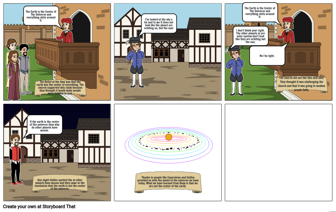 One night Galileo spotted the at other planets have moons and they came to the conclusion that the earth is not the center of the universe.