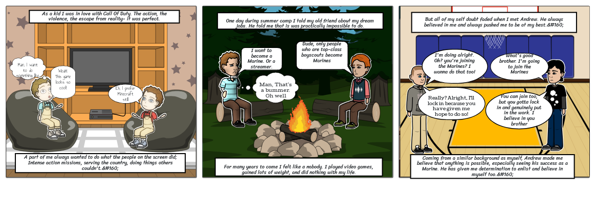 Coming from a similar background as myself, Andrew made me believe that anything is possible, especially seeing his success as a Marine. He has given me determination to enlist and believe in myself too.