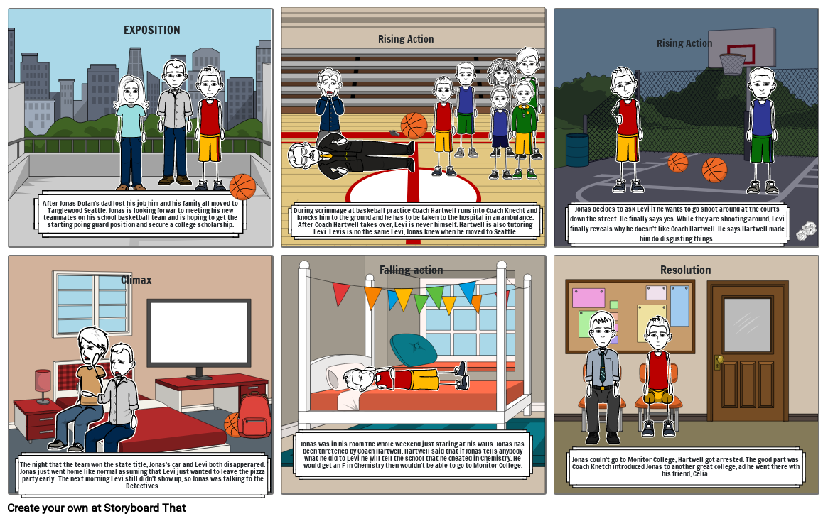 During scrimmage at baskeball practice Coach Hartwell runs into Coach Knecht and knocks him to the ground and he has to be taken to the hospital in an ambulance. After Coach Hartwell takes over, Levi is never himself. Hartwell is also tutoring Levi. Levis is no the same Levi, Jonas knew when he moved to Seattle.