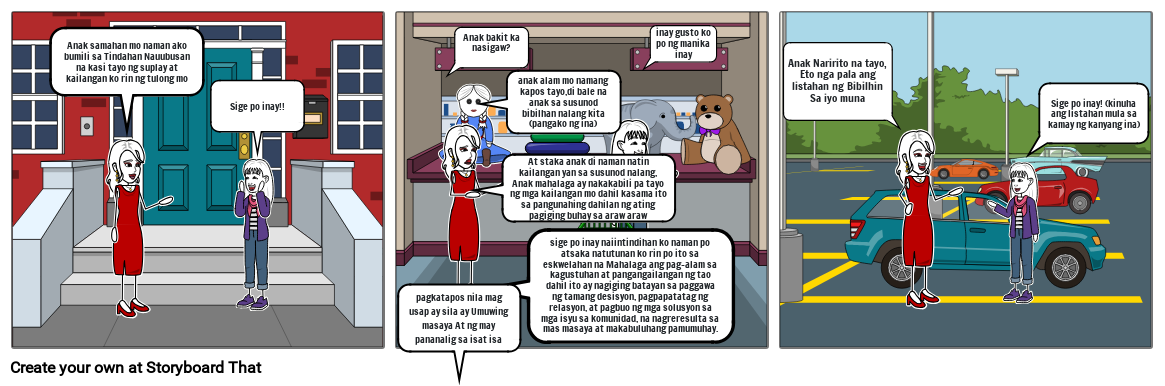 Anak samahan mo naman ako bumili sa Tindahan Nauubusan na kasi tayo ng suplay at kailangan ko rin ng tulong mo