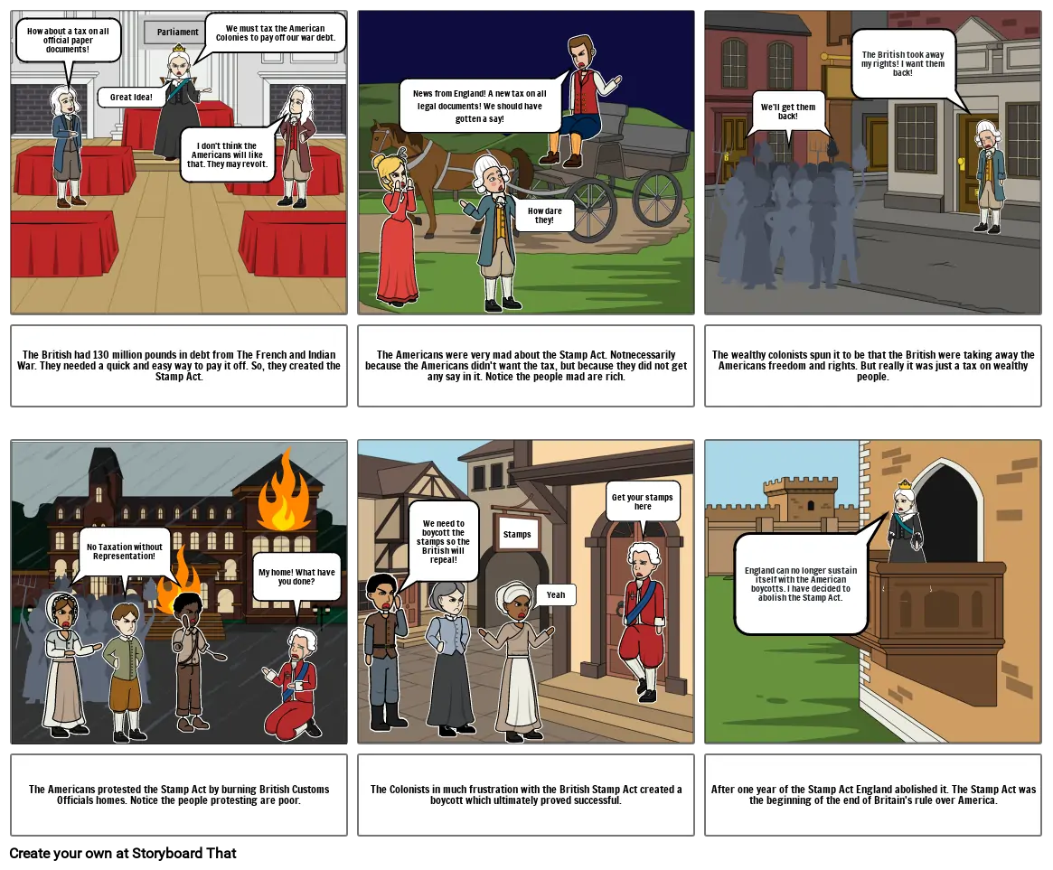 The Americans were very mad about the Stamp Act. Notnecessarily because the Americans didn't want the tax, but because they did not get any say in it. Notice the people mad are rich.