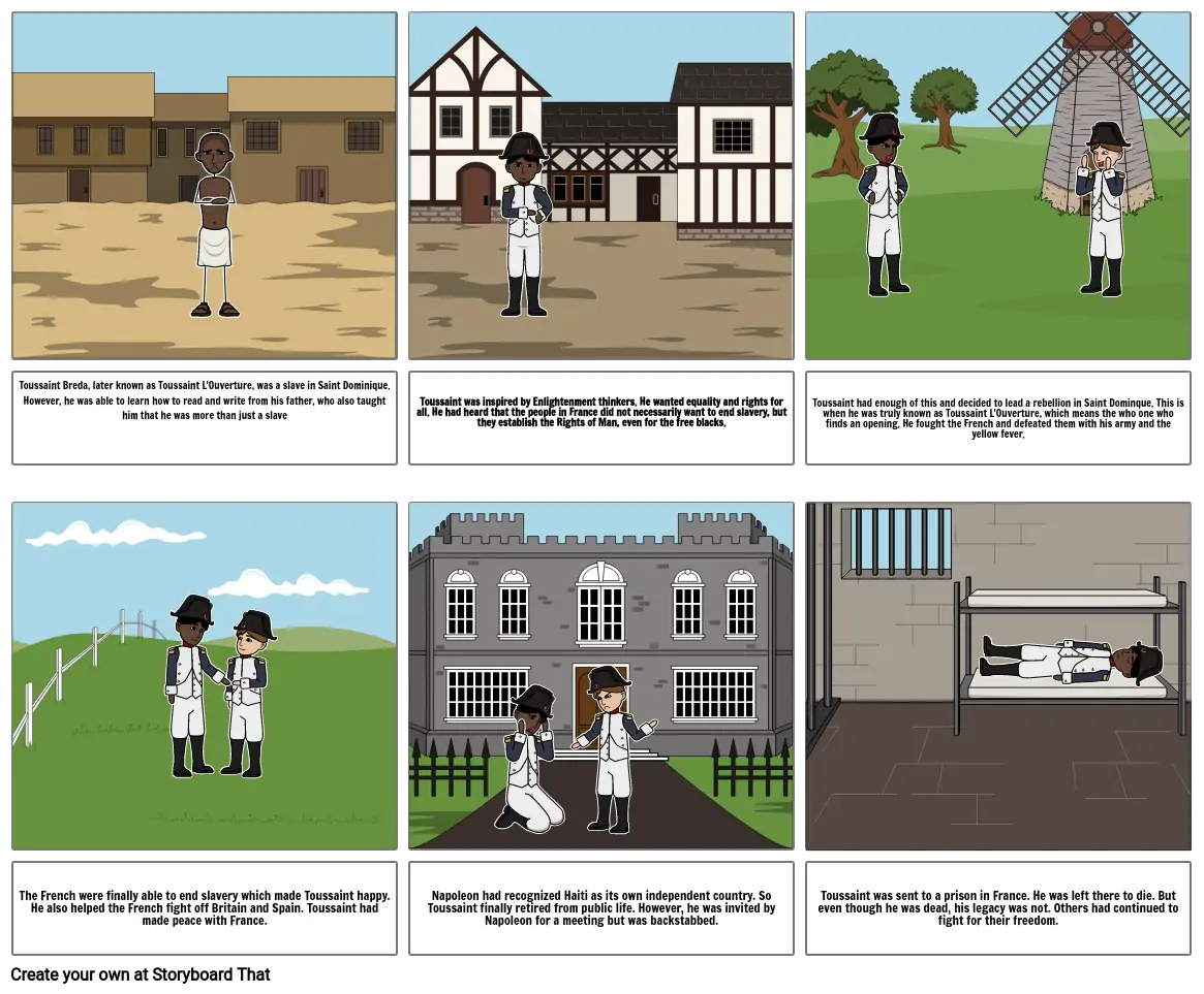 Toussaint Breda, later known as Toussaint L'Ouverture, was a slave in Saint Dominique. However, he was able to learn how to read and write from his father, who also taught him that he was more than just a slave