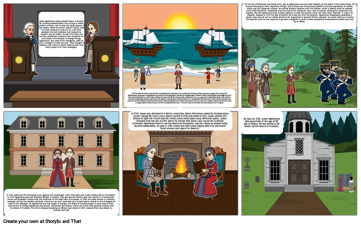 In 1732, both economic and military considerations had taken over as the main factors of the proposed voyage. This along with Oglethorpe's persuasive arguments allowed for him to granted a charter by King George II himself. James and 114 other passengers set off towards North America, where they settled at Yamacraw Bluff, where James acted basically as a governor substitute. Sadly, the original idea behind Georgia being a safe haven for debtors and the poor had been basically abandoned, but their place rose farmers, bakers, and anyone who the Trustees would be able to help in the production of valuable resources like silk and wine. James's ideals would still have a large impact on the colony, like how he opposed the idea of slavery and was friendly towards people of all religion.