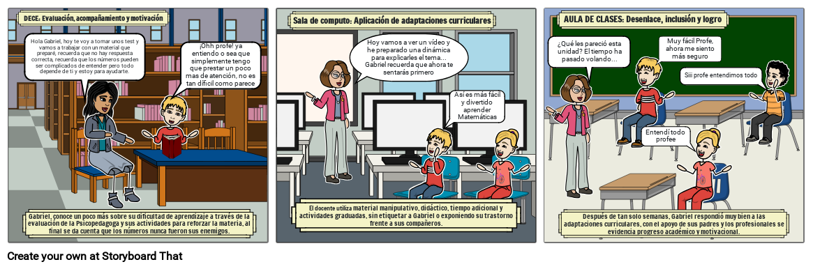 Gabriel, conoce un poco más sobre su dificultad de aprendizaje a través de la evaluación de la Psicopedagoga y sus actividades para reforzar la materia, al final se da cuenta que los números nunca fueron sus enemigos.