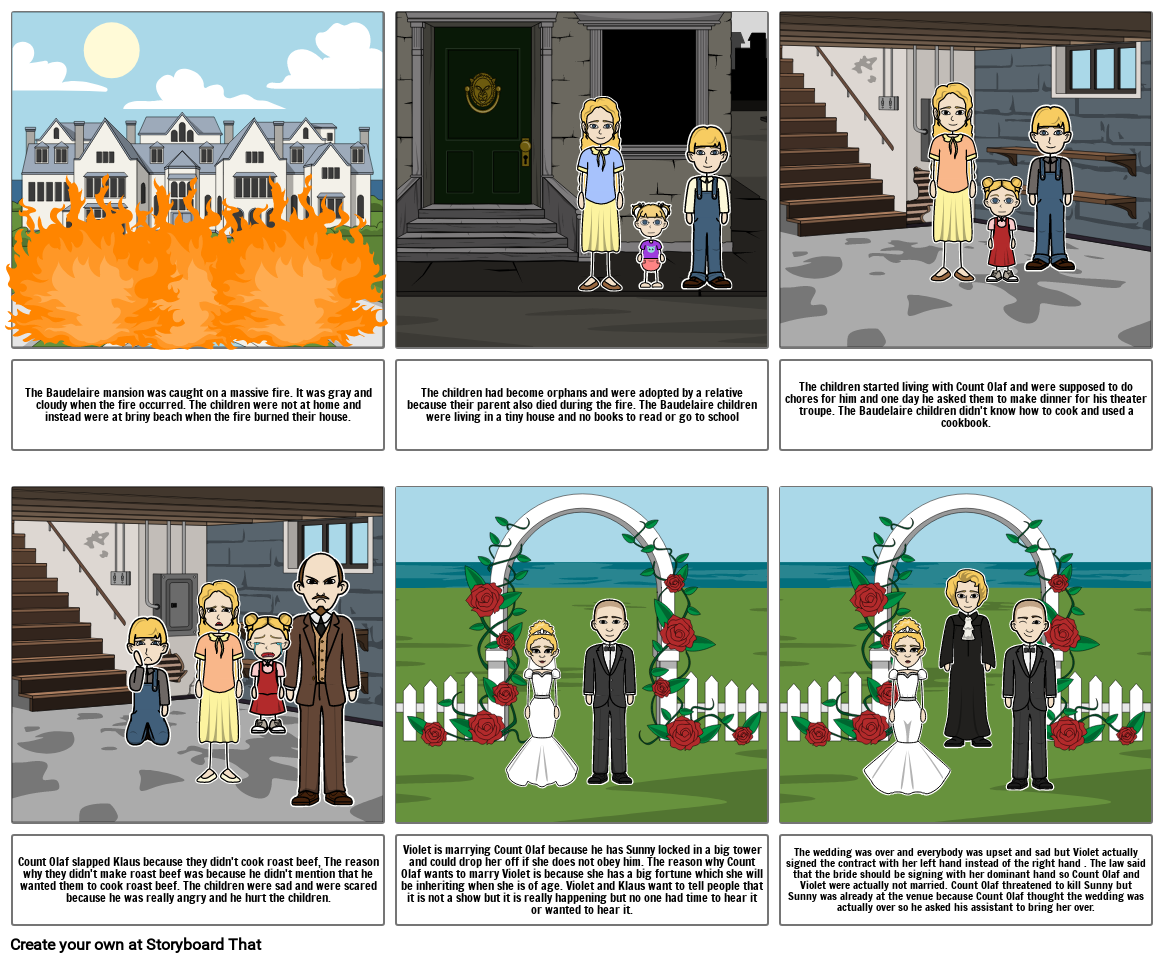 The children started living with Count Olaf and were supposed to do chores for him and one day he asked them to make dinner for his theater troupe. The Baudelaire children didn't know how to cook and used a cookbook.