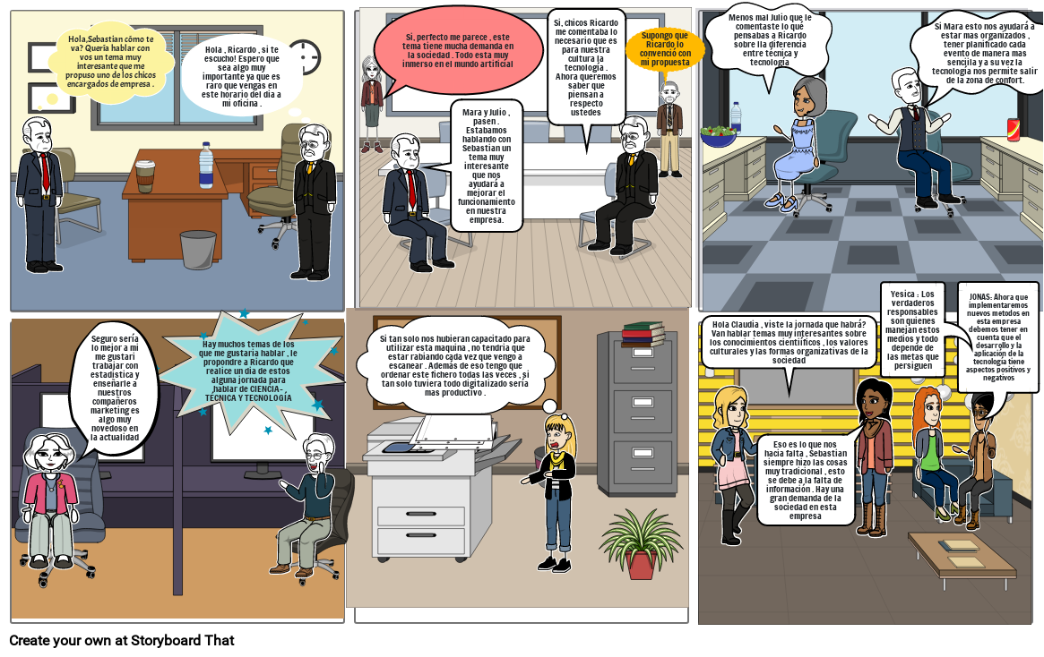 Mara y Julio , pasen . Estabamos hablando con Sebastian un tema muy interesante que nos ayudará a mejorar el funcionamiento en nuestra empresa.
