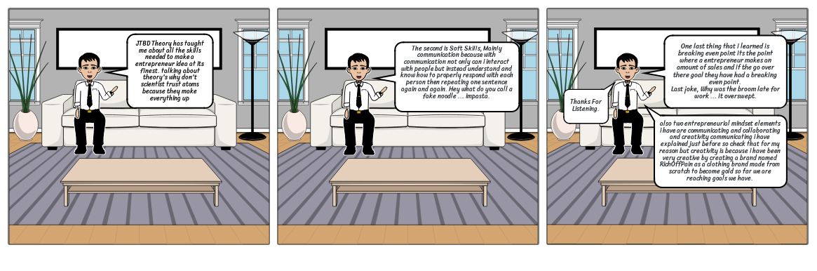 One last thing that i learned is breaking even point its the point where a entrepreneur makes an amount of sales and if the go over there goal they have had a breaking even point.Last joke, Why was the broom late for work ... it overswept.