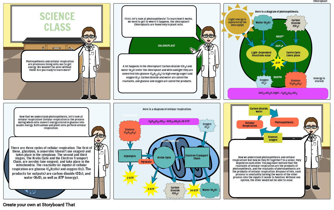 Now that we understand photosynthesis, let's look at cellular respiration! Cellular respiration is the process during which cells convert energy stored in glucose into usable energy. Both animal and plant cells perform cellular respiration.