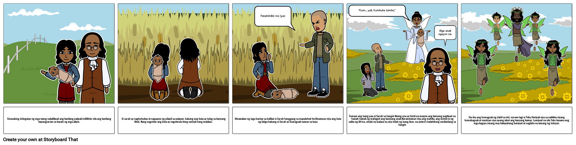 Si sarah ay naghuhukay at nagaayos ng pilapil sa palayan, habang ang bata ay tulog sa kanyang likod. Nang nagutom ang bata ay nagsimula itong umiyak nang malakas.