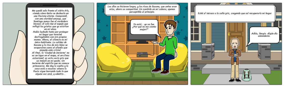 Me quedé solo frente al vidrio frío, viendo cómo Quito se deshacía en una llovizna eterna. Comprendí, con una claridad amarga, que Santiago nunca fue el verdadero invasor; él solo fue el espejo que reflejó las grietas que ya existían en mi alma.Había luchado tanto por proteger mi hogar que terminé destruyéndolo con mis propias manos. Ahora, el silencio es mi único habitante. La calidez de Susana y la risa de mis hijos se evaporaron como el aliento que empaña este cristal.Al final, la 'Ciudad de Invierno' no es un lugar en el mapa, ni un clima estacional; es este vacío gris que se instaló en mi pecho. Un invierno del espíritu que no conoce primaveras. Me doy la vuelta y la casa está a oscuras: afuera la lluvia sigue borrando todo lo que alguna vez amé, y adentro... adentro el frío ya ganó.