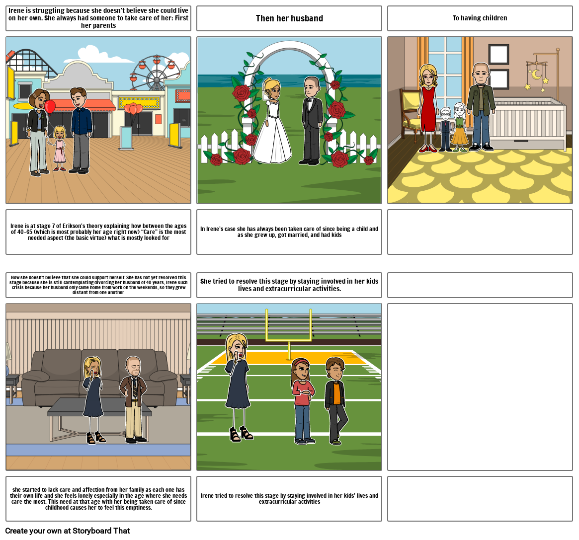 Irene tried to resolve this stage by staying involved in her kids’ lives and extracurricular activities