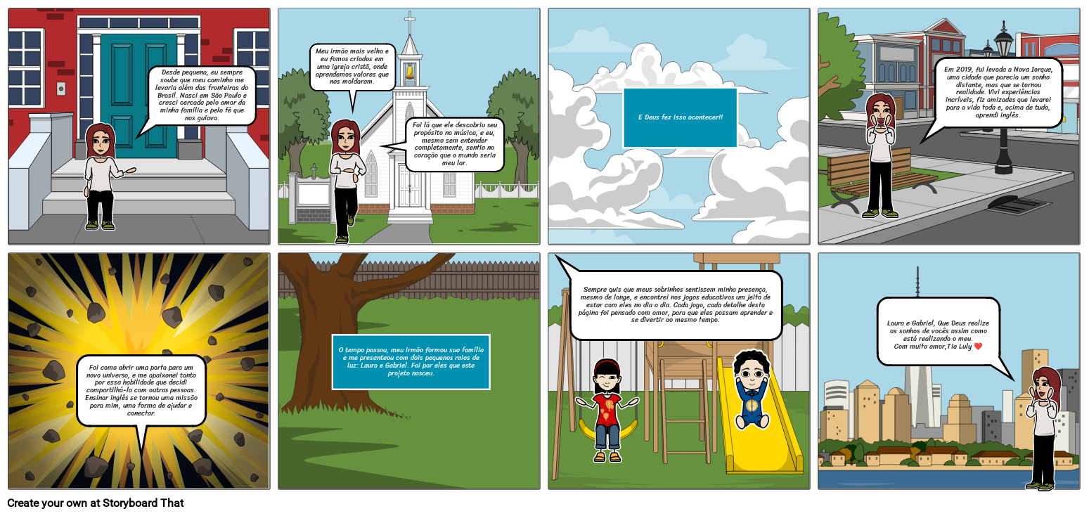 Desde pequena, eu sempre soube que meu caminho me levaria além das fronteiras do Brasil. Nasci em São Paulo e cresci cercada pelo amor da minha família e pela fé que nos guiava.