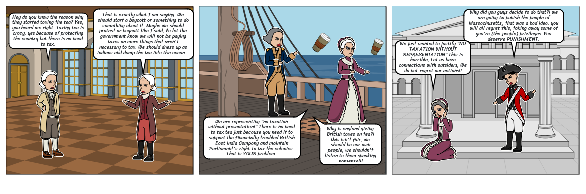 We just wanted to justify "NO TAXATION WITHOUT REPRESENTATION" This is horrible, Let us have connections with outsiders, We do not regret our actions!!