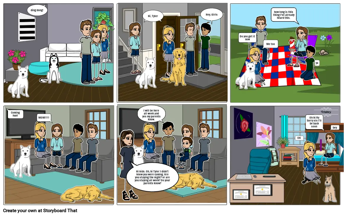 Hi kids. Oh, hi Tyler I didn't know you were coming. Are you staying the night? or are you staying all week? Do your parents know?