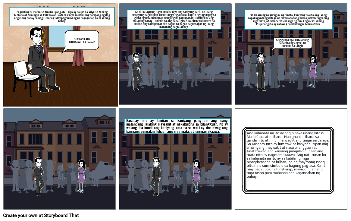 Ang kabanata na ito ay ang pinaka unang kita ni Maria Clara at ni Ibarra. Nabighani si Ibarra sa ganda nito at hindi maiwaglit ang tingin sa dalaga. So Kasabay nito ay lumitaw sa kanyang isipan ang ama nyang may sakit at nasa bilangguan at tinatatawag ang kanyang pangalan, luhaan ang mata nito ay nagmamakaawa. Ang natutunan ko sa kabanata na ito ay sa kabila ng mga pinagdaraanan sa buhay, laging mayroong isang bituin na sumisimbolo sa bagong pag-asa. Kahit may pagsubok na hinaharap, mayroon namang mga rason para mahanap ang kagandahan ng buhay.