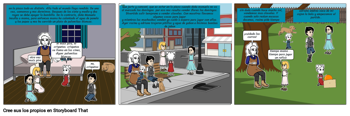 Que jarto y canson!, que es estar en la pieza cuando doña manuela no va al mercado los domingos. por eso nos resulta vender flores los domingos. Divertido salir temprano a vender claveles. Con nosotros llevamos algunas cosas para jugar.y mientras las muchachas venden yo cuido o espero para jugar con ellas.Ayer rosina y adriana trajeron pitillos y agua de gabon e hicimos bombas de jabon