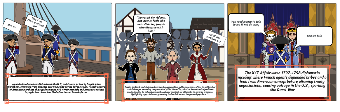 The XYZ Affair was a 1797-1798 diplomatic incident where French agents demanded bribes and a loan from American envoys before allowing treaty negotiations, causing outrage in the U.S., sparking theQuasi-War