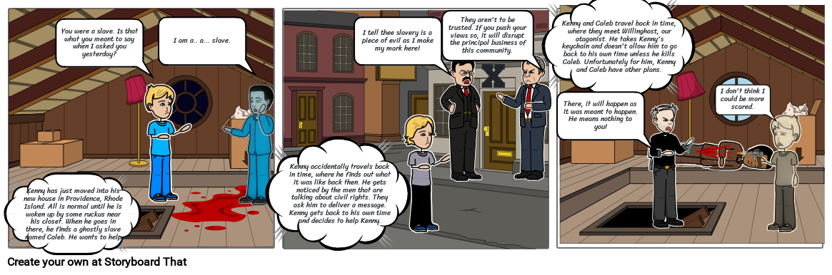 Kenny has just moved into his new house in Providence, Rhode Island. All is normal until he is woken up by some ruckus near his closet. When he goes in there, he finds a ghostly slave named Caleb. He wants to help him.
