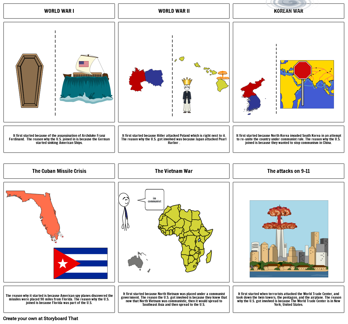 It first started because Hitler attacked Poland which is right next to it. The reason why the U.S. got involved was because Japan attacked Pearl Harbor .
