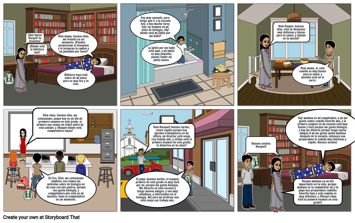 Hola Racquel! buenos tardes, venes rapido porque hay muchos trabajadores en mi officia, mi director está enoja con trabajo mío, y ¿Cómo está el primera examen de esta grado, te diviertes en tu clase?