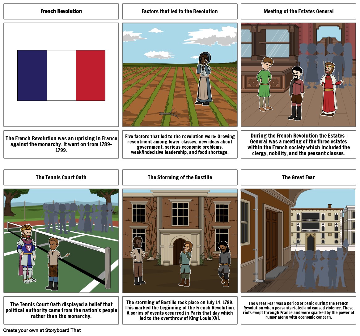 The Great Fear was a period of panic during the French Revolution when peasants rioted and caused violence. These riots swept through France and were sparked by the power of rumor along with economic concern.