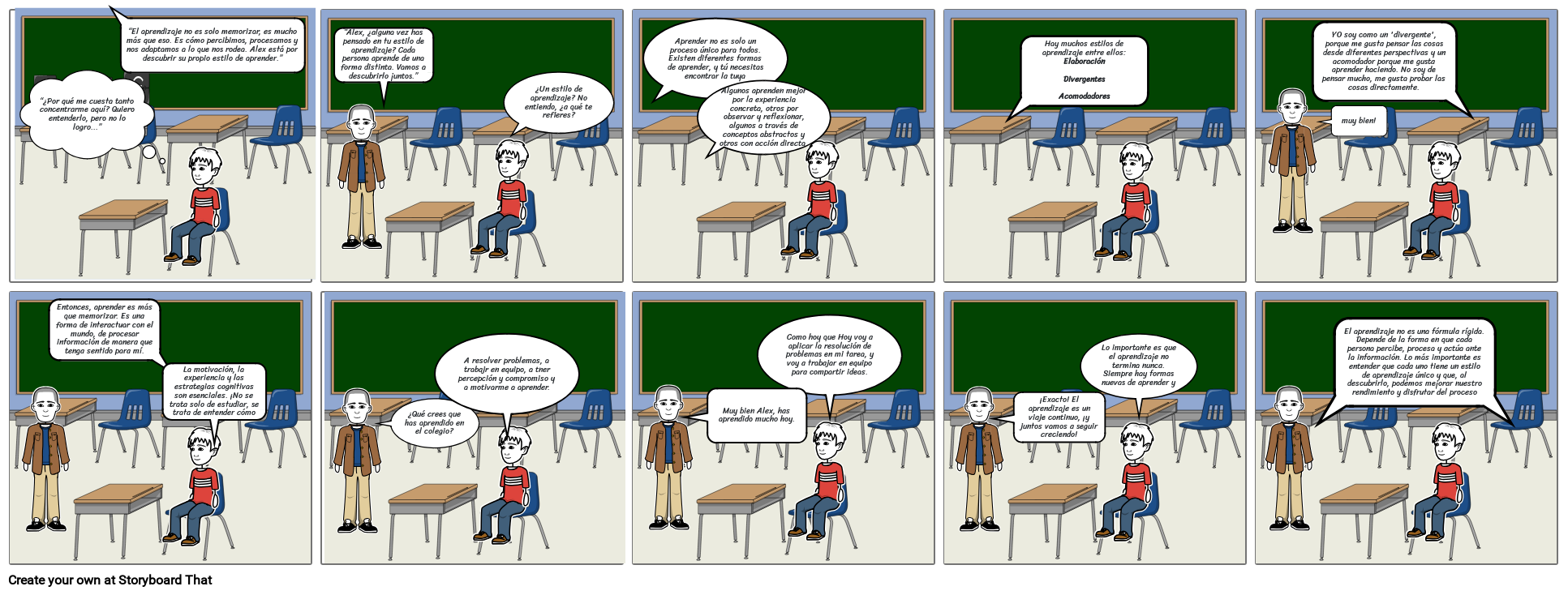 “El aprendizaje no es solo memorizar, es mucho más que eso. Es cómo percibimos, procesamos y nos adaptamos a lo que nos rodea. Alex está por descubrir su propio estilo de aprender.”