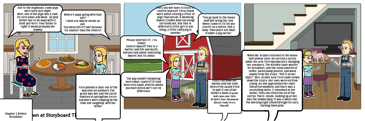 Out to the hoghouse, some pigs were born last night.Well, one of the pigs was a runt, its very small and weak . So your father has to do away with it. Dont yell fern ! Your father is right it would probably die anyway