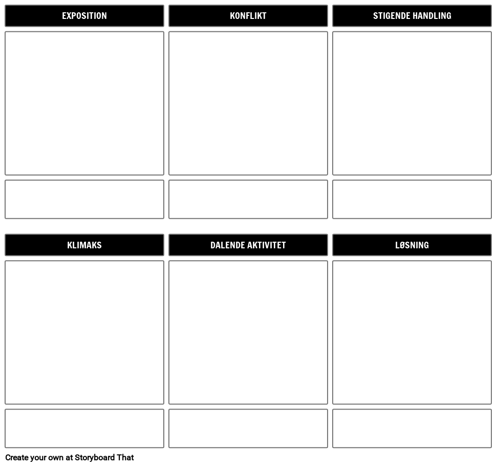 Diagram Skabelon Inklusive: Exposition, Konflikt, Stigende Handling, Klimaks, Faldende Handling, Opløsning