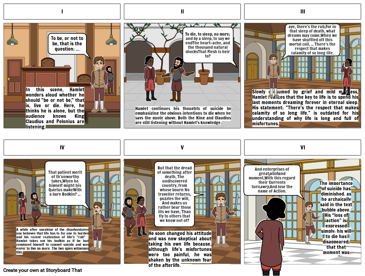 A while after speaking of the disadvantages one believes that life has to for one to burden and his recent realization of life's "rub" , Hamlet takes out his bodkin as if he had convinced himself to commit suicide and was eager to live no more. The two spies witnesses this.