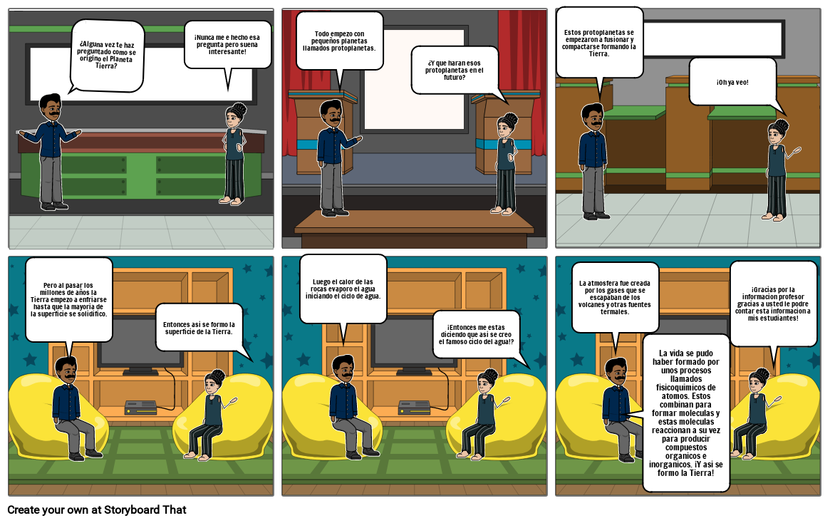 La vida se pudo haber formado por unos procesos llamados fisicoquimicos de atomos. Estos combinan para formar moleculas y estas moleculas reaccionan a su vez para producir compuestos organicos e inorganicos. ¡Y asi se formo la Tierra!