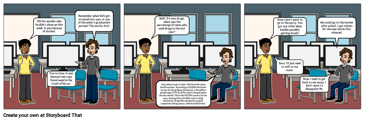 I was about to get to that. Also from the same health teacher, According to NCDAS (National Center for Drug Abuse Statistics), 2.08 million people ages 12-17 (8.33%) report using drugs in the last month. This is the ENTIRE country by the way. Among them, 83.88% report using marijuana. Drugs like marijuana can give symptoms of lung cancer, which could be fatal.