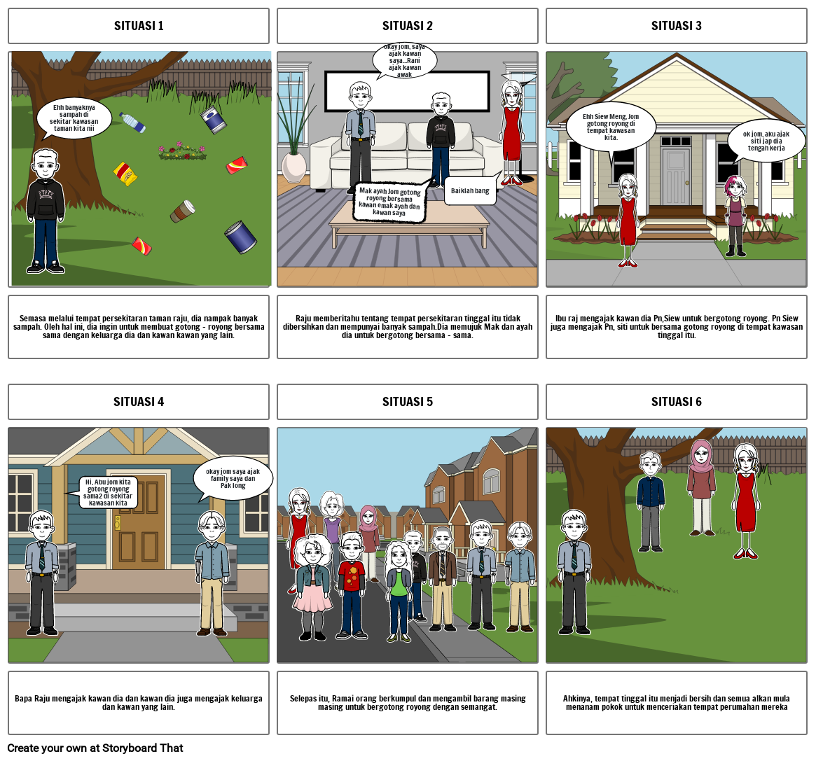 Raju memberitahu tentang tempat persekitaran tinggal itu tidak dibersihkan dan mempunyai banyak sampah.Dia memujuk Mak dan ayah dia untuk bergotong bersama - sama.