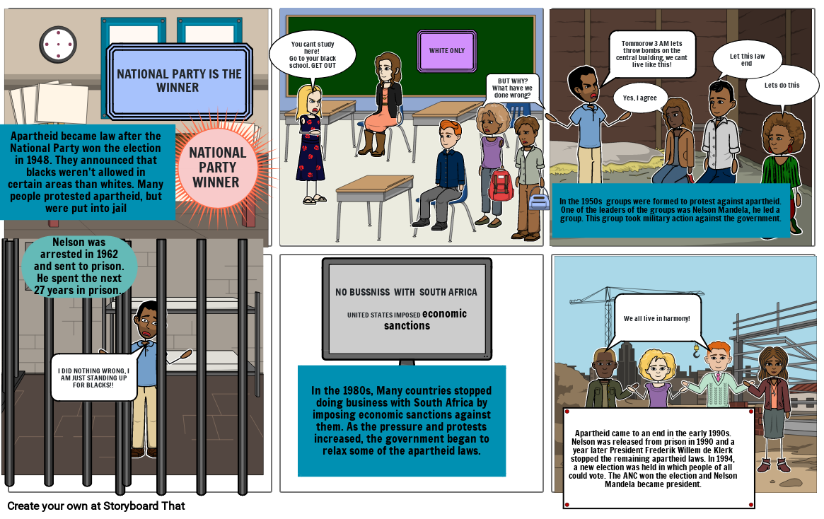 Apartheid became law after the National Party won the election in 1948. They announced that blacks weren't allowed in certain areas than whites. Many people protested apartheid, but were put into jail