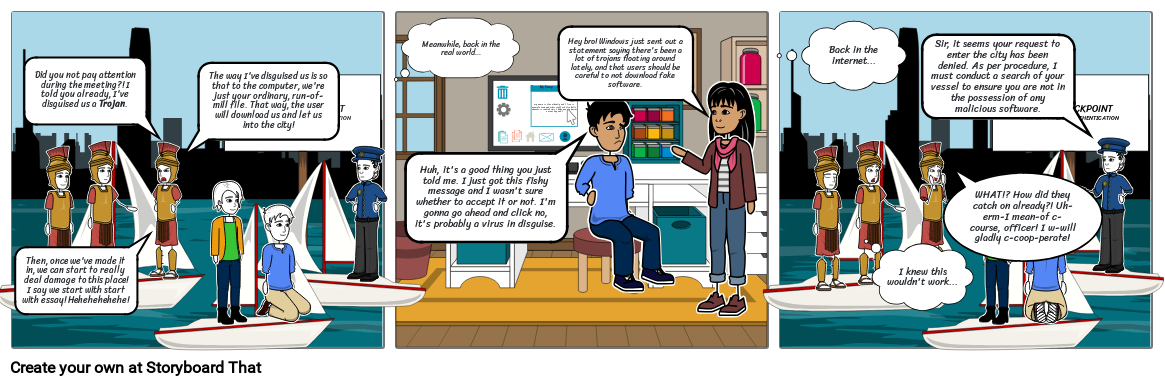 Did you not pay attention during the meeting?! I told you already, I've disguised us a Trojan.