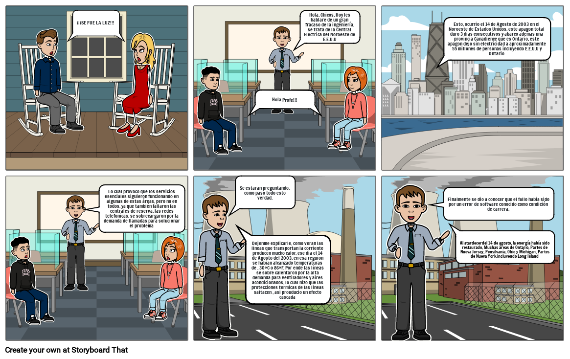 Esto, ocurrio el 14 de Agosto de 2003 en el Noroeste de Estados Unidos, este apagon total duro 3 dias consecutivos y abarco ademas una provincia Canadience que es Ontario, este apagon dejo sin electricidad a aproximadamente 55 millones de personas incluyendo E.E.U.U y Ontario