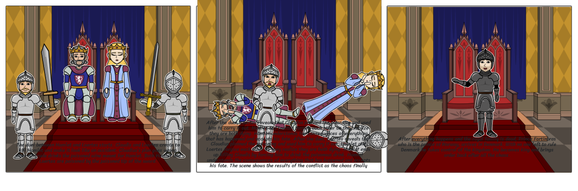 After everything happens and the royal family is dead, Prince Fortinbras who is the prince of Norway, arrives in Denmark. With no one left to rule Denmark he takes control of the kingdom. He becomes king and brings order back after all the chaos.