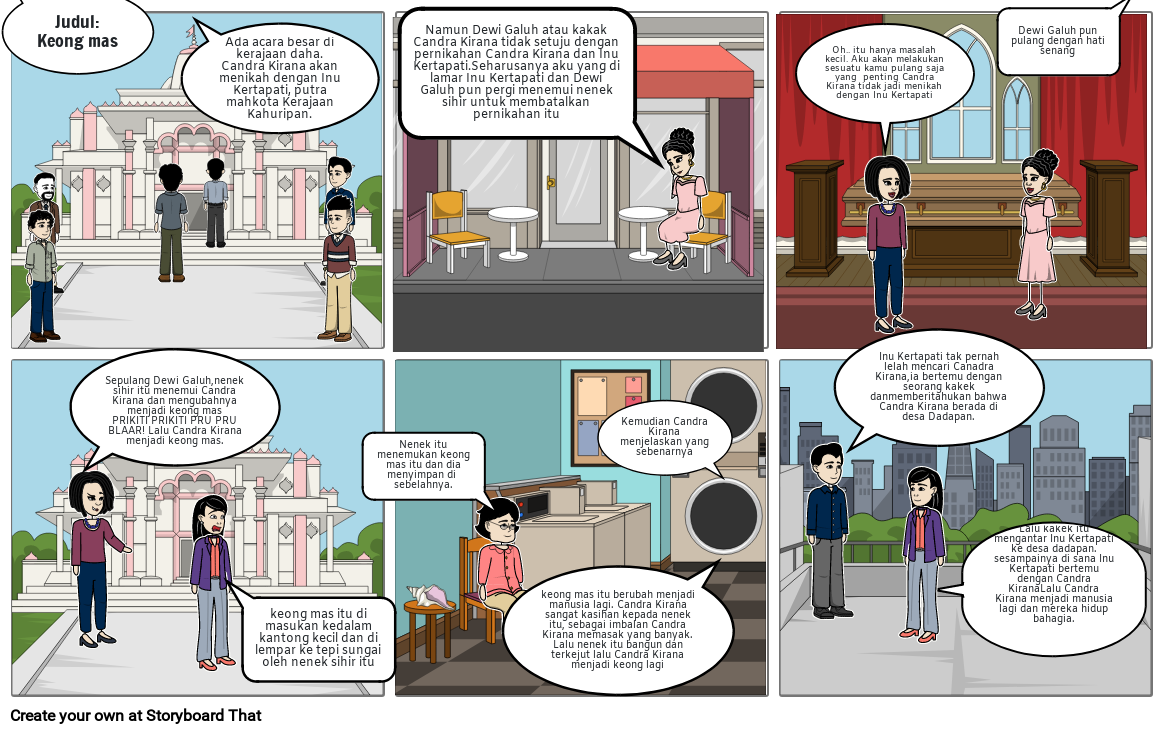 Sepulang Dewi Galuh,nenek sihir itu menemui Candra Kirana dan mengubahnya menjadi keong masPRIKITI PRIKITI PRU PRU BLAAR! Lalu Candra Kirana menjadi keong mas.