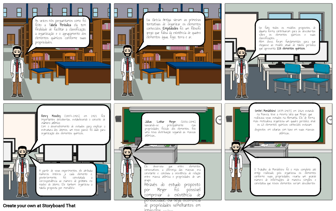 Dmitri Mendeleiev( 1834-1907), em 1869, estando na Rússia, teve a mesma ideia que Meyer, que realizava seus estudos na Alemanha. Ele, de forma mais meticulosa, organizou um quadro periódico, onde os 63 elementos químicos conhecidos estavam dispostos em colunas com base em suas massas atômicas.