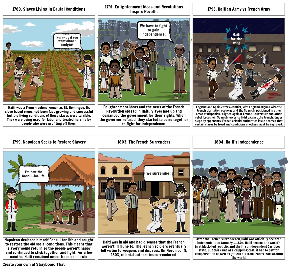 Enlightenment ideas and the news of the French Revolution spread in Haiti. Slaves met up and demanded the government for their rights. When the governor refused, they started to come together to fight for independence.
