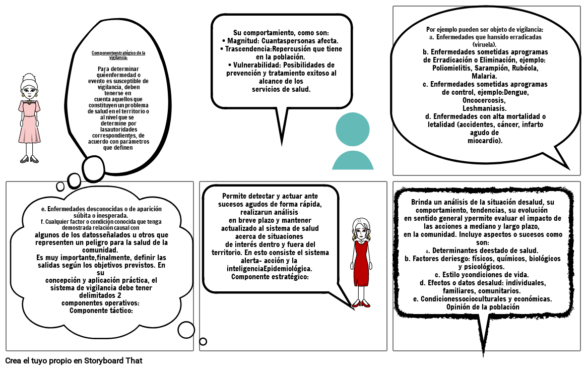 e. Enfermedades desconocidas o de aparición súbita o inesperada. f. Cualquier factor o condición conocida que tenga demostrada relación causal con algunos de los datosseñalados u otros que representen un peligro para la salud de la comunidad. Es muy importante,finalmente, definir las salidas según los objetivos previstos. En su concepción y aplicación práctica, el sistema de vigilancia debe tener delimitados 2 componentes operativos: Componente táctico: