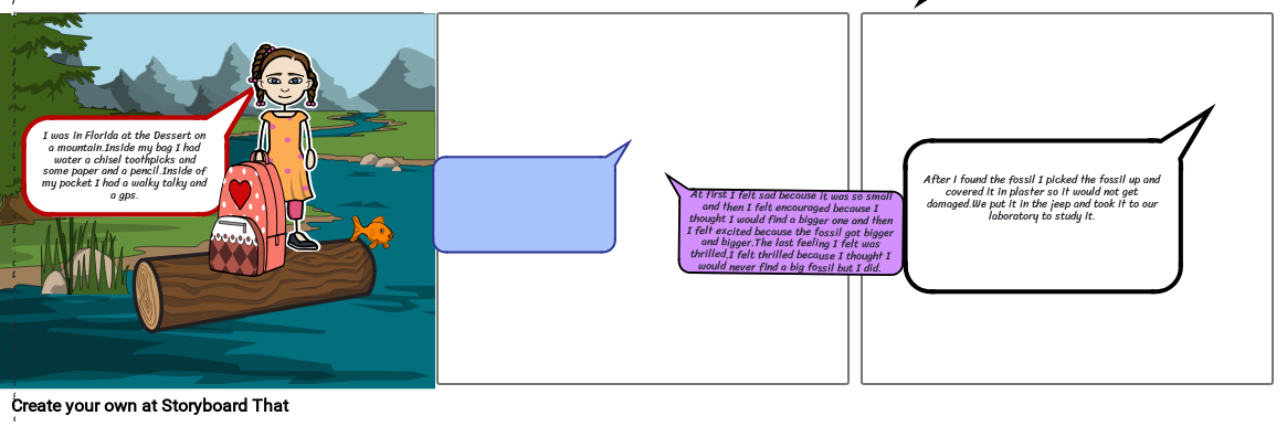 At first I felt sad because it was so small and then I felt encouraged because I thought I would find a bigger one and then I felt excited because the fossil got bigger and bigger.The last feeling I felt was thrilled.I felt thrilled because I thought I would never find a big fossil but I did.