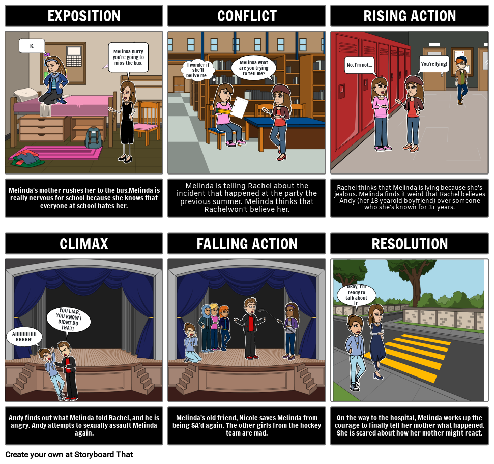 Melinda is telling Rachel about the incident that happened at the party the previous summer. Melinda thinks that Rachelwon't believe her.