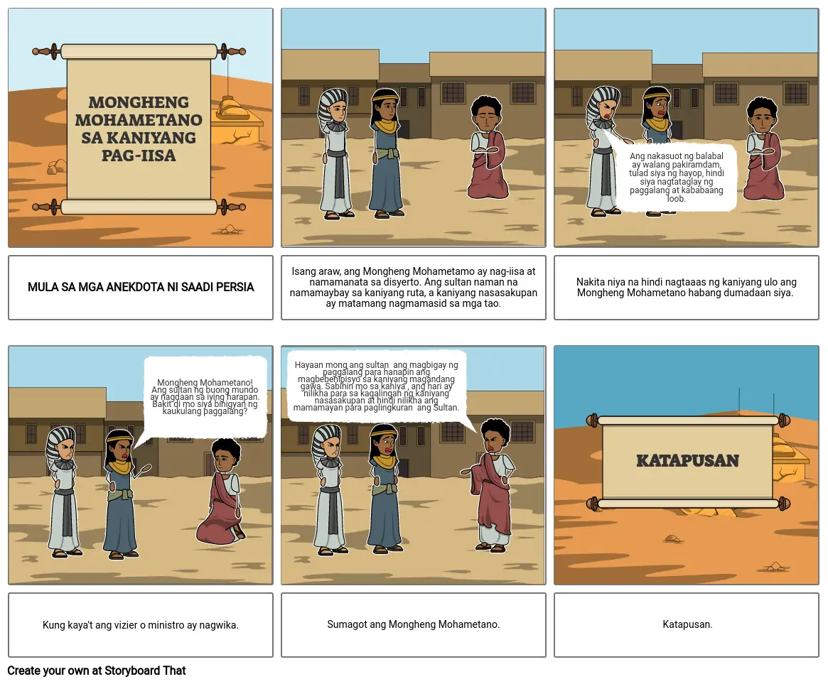 Isang araw, ang Mongheng Mohametamo ay nag-iisa at namamanata sa disyerto. Ang sultan naman na namamaybay sa kaniyang ruta, a kaniyang nasasakupan ay matamang nagmamasid sa mga tao.