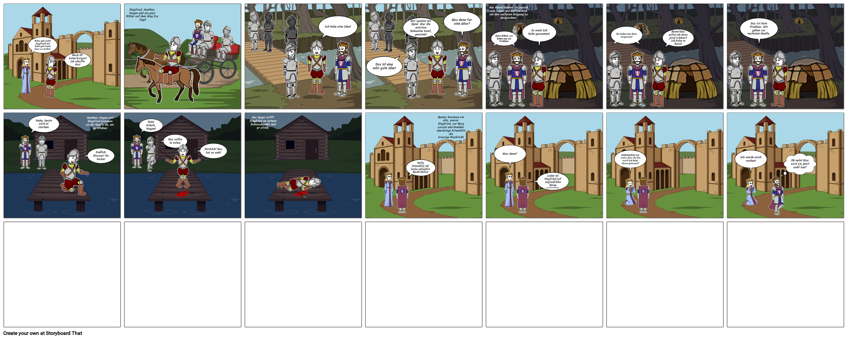 Gunther, Hagen und Siegfried kommen an der Quelle an, um zu trinken