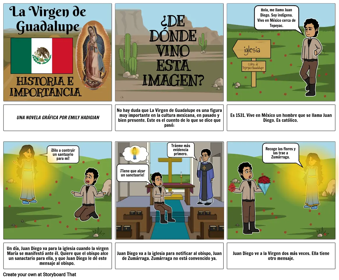 Un día, Juan Diego va para la iglesia cuando la virgen María se manifestó ante él. Quiere que el obispo alce un sanactario para ella, y que Juan Diego le dé este mensaje al obispo.