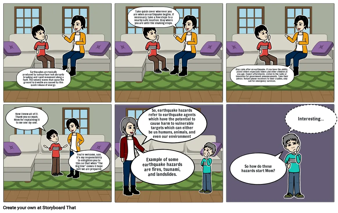 Example of some earthquake hazards are fires, tsunami, and landslides.