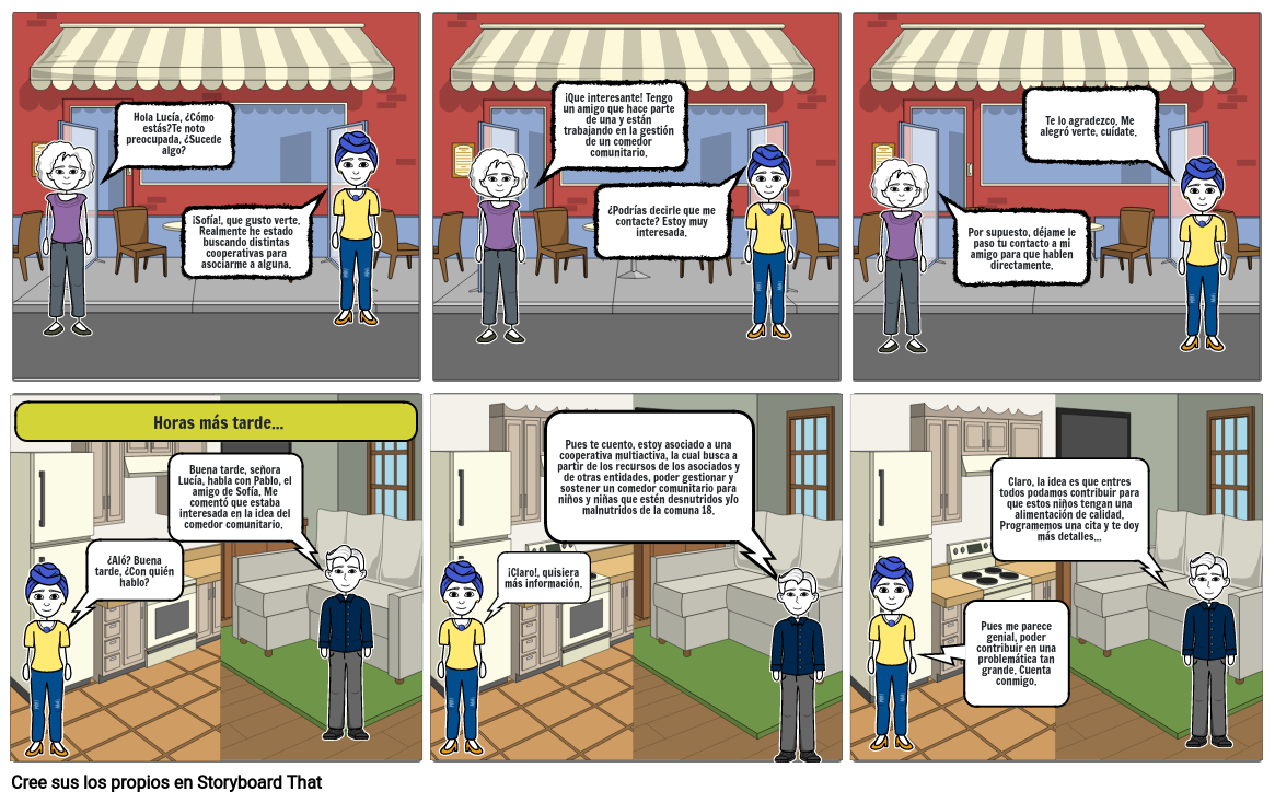 Buena tarde, señora Lucía, habla con Pablo, el amigo de Sofía. Me comentó que estaba interesada en la idea del comedor comunitario.