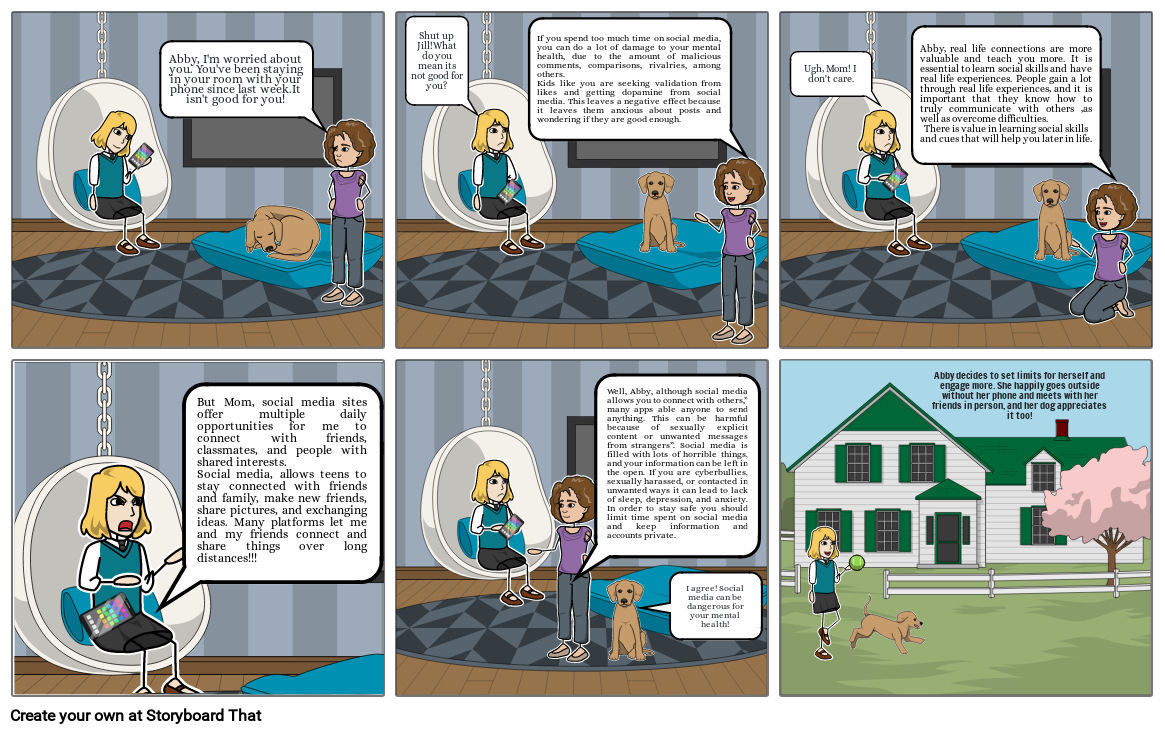 Abby decides to set limits for herself and engage more. She happily goes outside without her phone and meets with her friends in person, and her dog appreciates it too!
